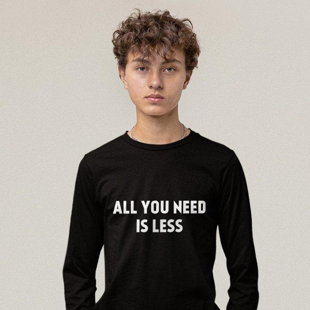 All You Need Is Less Long Sleeve T-Shirt – Classy T-Shirt – Minimalist Text Statement Basic Tee