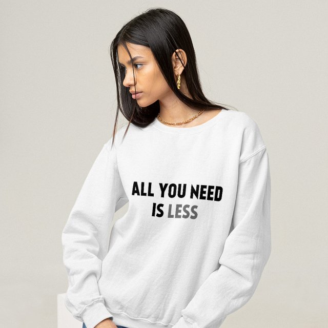 All You Need Is Less Sweatshirt – Classy Crewneck Sweatshirt – Minimalist Text Statement Unisex Sweatshirt