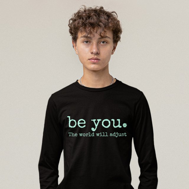 Be You The World Will Adjust Long Sleeve T-Shirt is proudly made with 7x less water than average manufacturers, in recycle-friendly facilities that also guarantee zero sweatshop conditions. Inspirational T-Shirt is designed and printed in California.