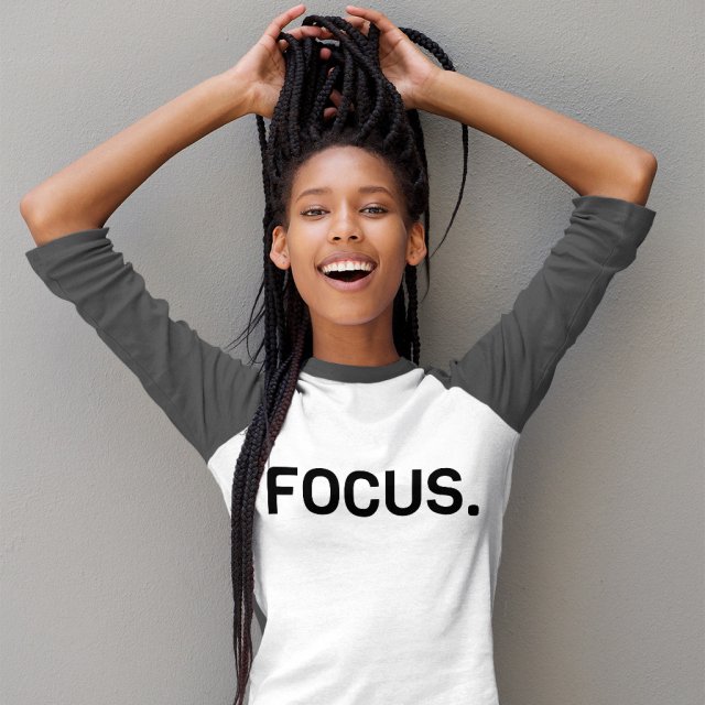 Focus Baseball T-Shirt – Motivational 3/4 Sleeve – Unique Design Raglan Jersey Shirt
