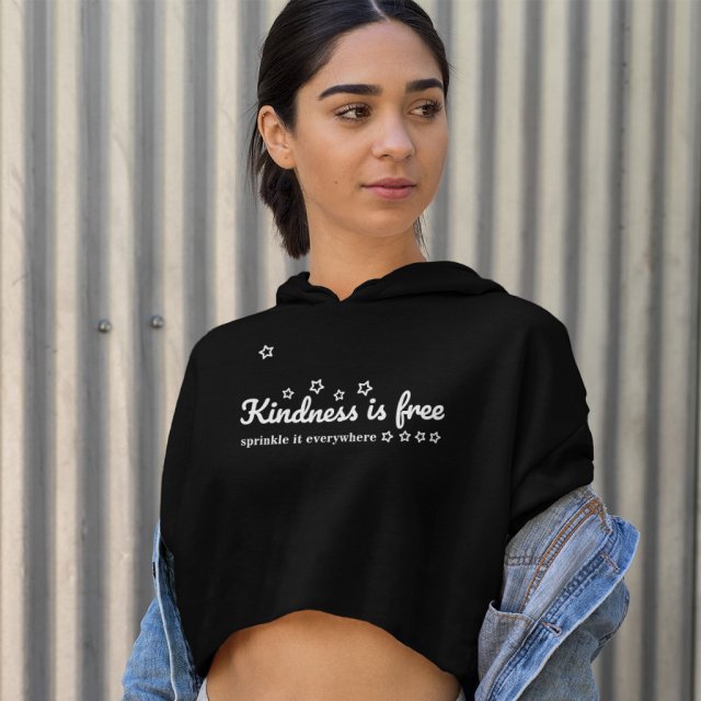 Kindness Is Free Women’s Cropped Hoodie – Positive Saying Hooded Sweatshirt – Motivational Super Crop Top Hoodies
