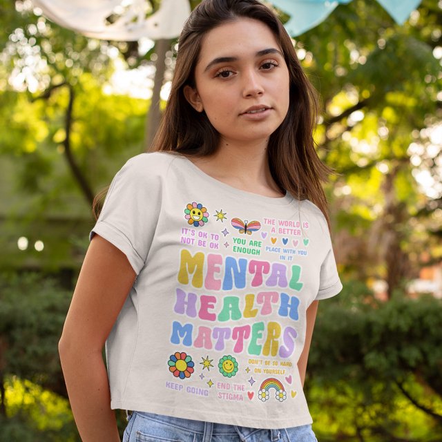 Mental Health Matters Cropped T-Shirt – Inspirational Trendy Tee – Recreational Therapy Women’s Basic T-Shirt