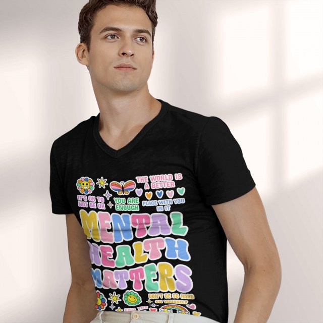 Mental Health Matters V-Neck T-Shirt – Recreational Therapy Basic T-Shirt – Inspirational Tee