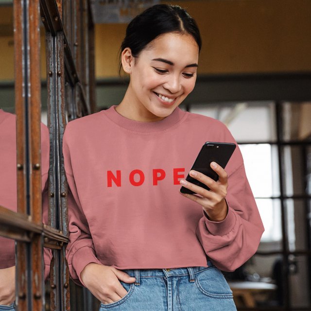 Nope Graphic Cropped Long Sleeve Sweatshirt – Minimalist Design Women’s Crop Top – Sarcastic Long Sleeves Pullover