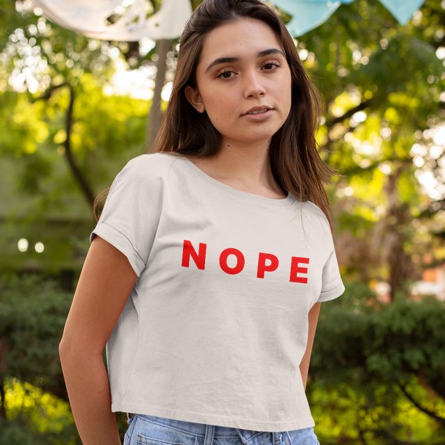 Nope Graphic Cropped T-Shirt – Sarcastic Trendy Tee – Minimalist Design Women’s Basic T-Shirt