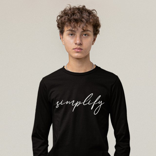 Simplify Long Sleeve T-Shirt – Inspirational Quote T-Shirt – Gift for Minimalists Basic Tee