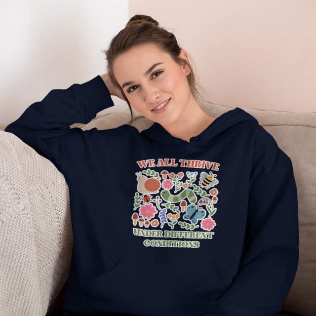 We All Thrive Under Different Conditions Hoodie – Mental Health Awareness Hooded Sweatshirt – Positive Message Unisex Hoodie