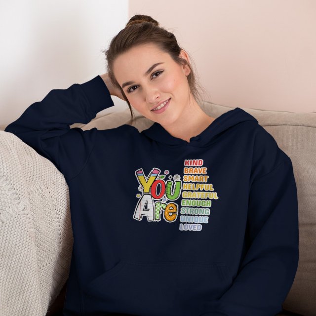 You Are Kind Loved Brave Enough Hoodie – Positive Affirmations Hooded Sweatshirt – Colorful Design Unisex Hoodie