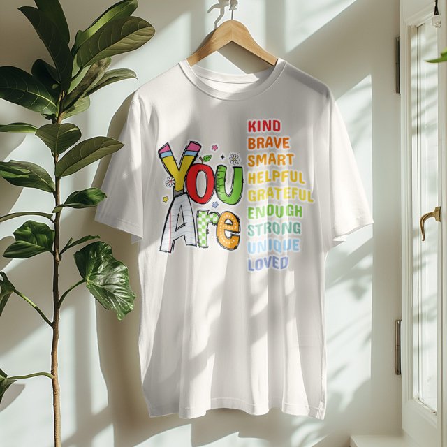 You Are Kind Loved Brave Enough T-Shirt – Colorful Design Heavy Cotton Tee – Positive Affirmations Shirt